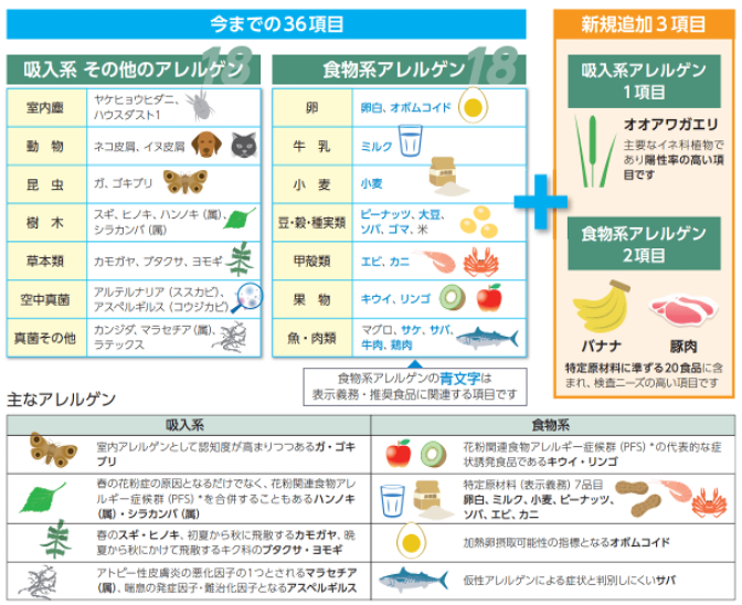 検査可能なアレルゲン