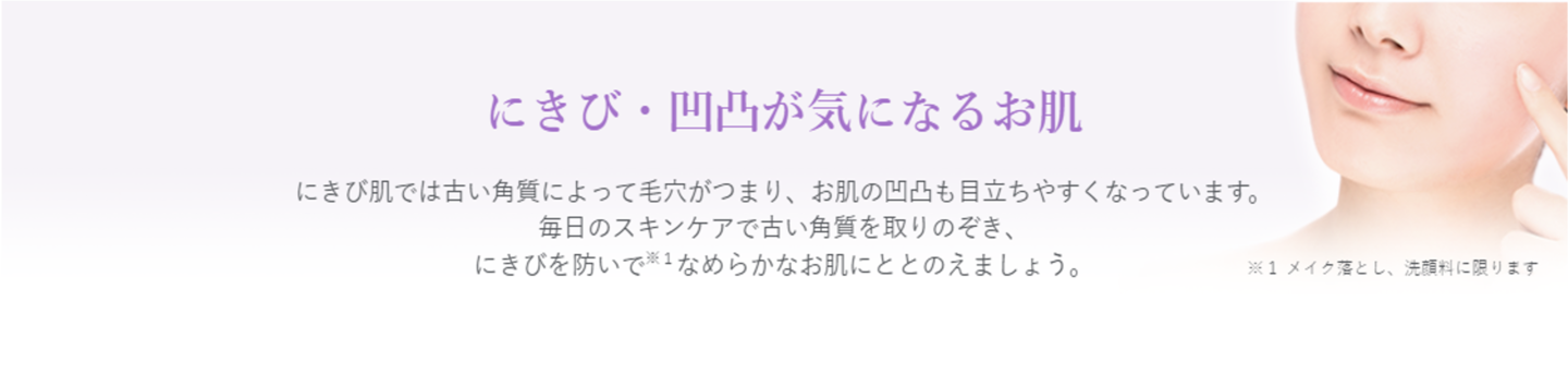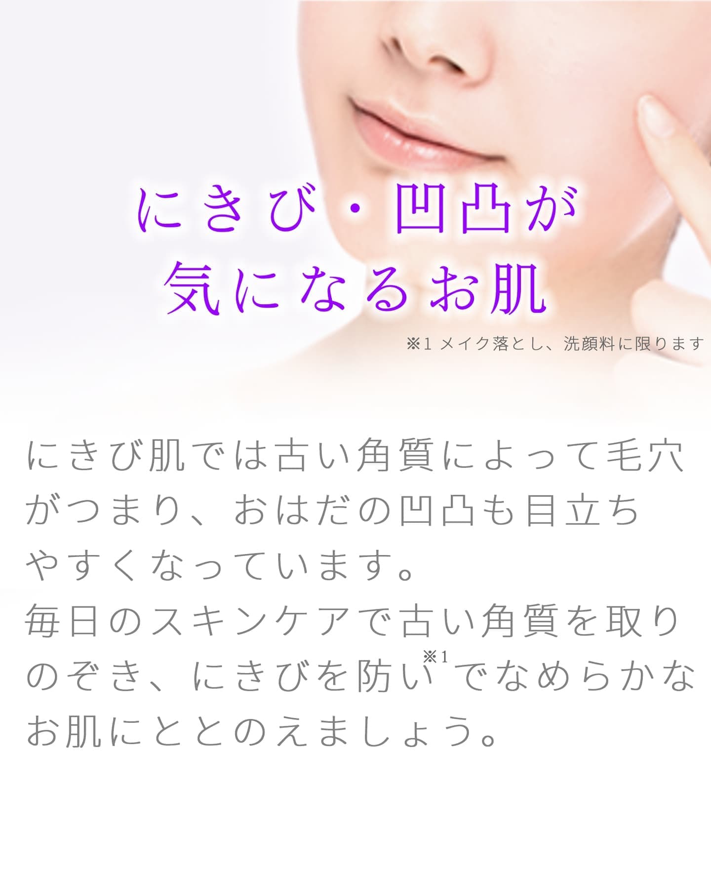 マイルドピーリング作用によって、ざらつきがちなお肌を透明感のあるやわらかくなめらかなお肌にととのえます。